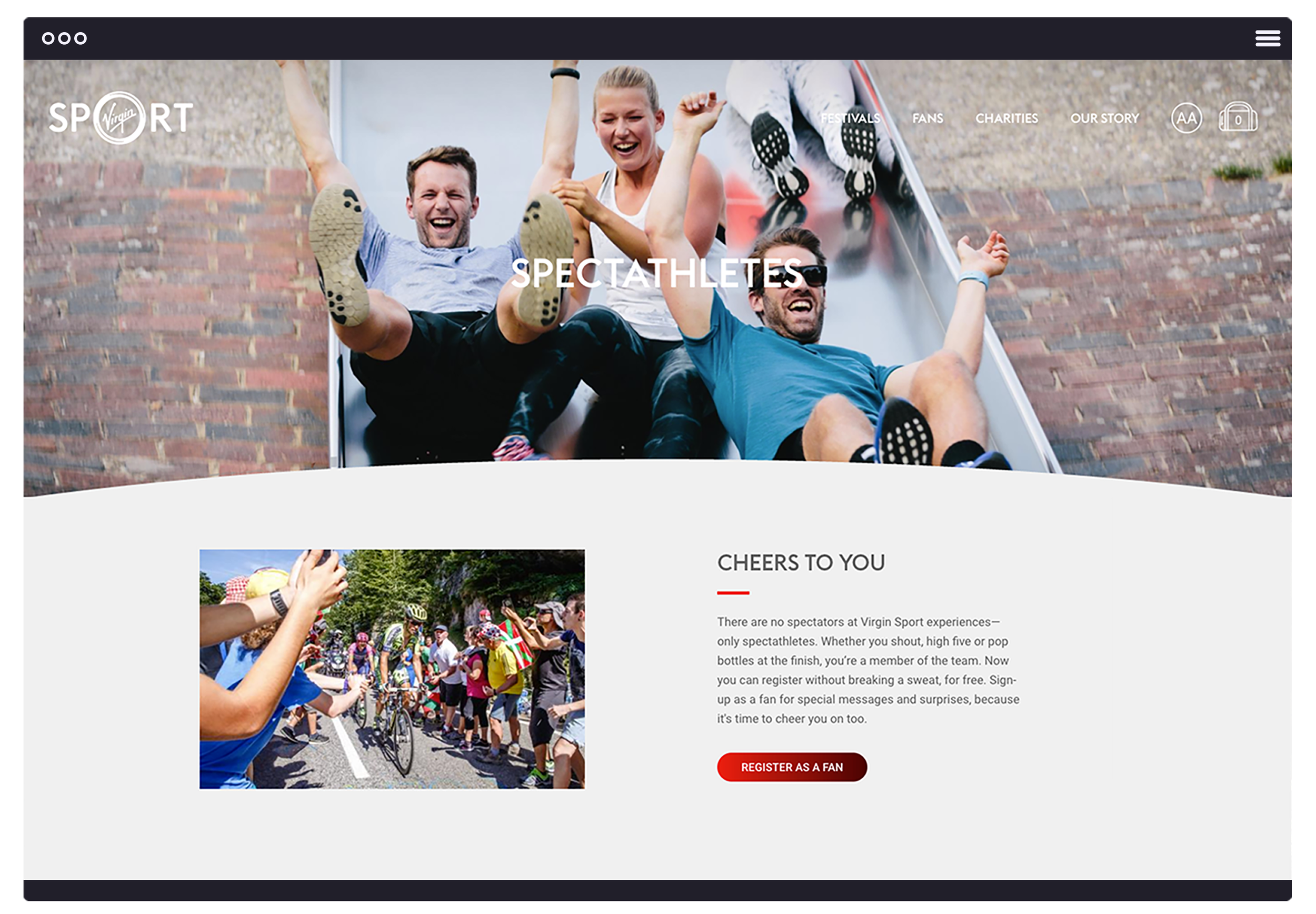 As the global director of creative and content at Virgin Sport, I worked closely with the head of marketing on honing the brand’s identity and preparing the website and all communications for the official launch in January 2017. I also designed print marketing collateral; digital assets for web, email, and social; pitch decks; and internal communications materials. Post-launch efforts included development and rollout of robust customer acquisition campaigns via email marketing, social, and out of home as well as the development and execution of experiential graphics and copy for event signage and installations.