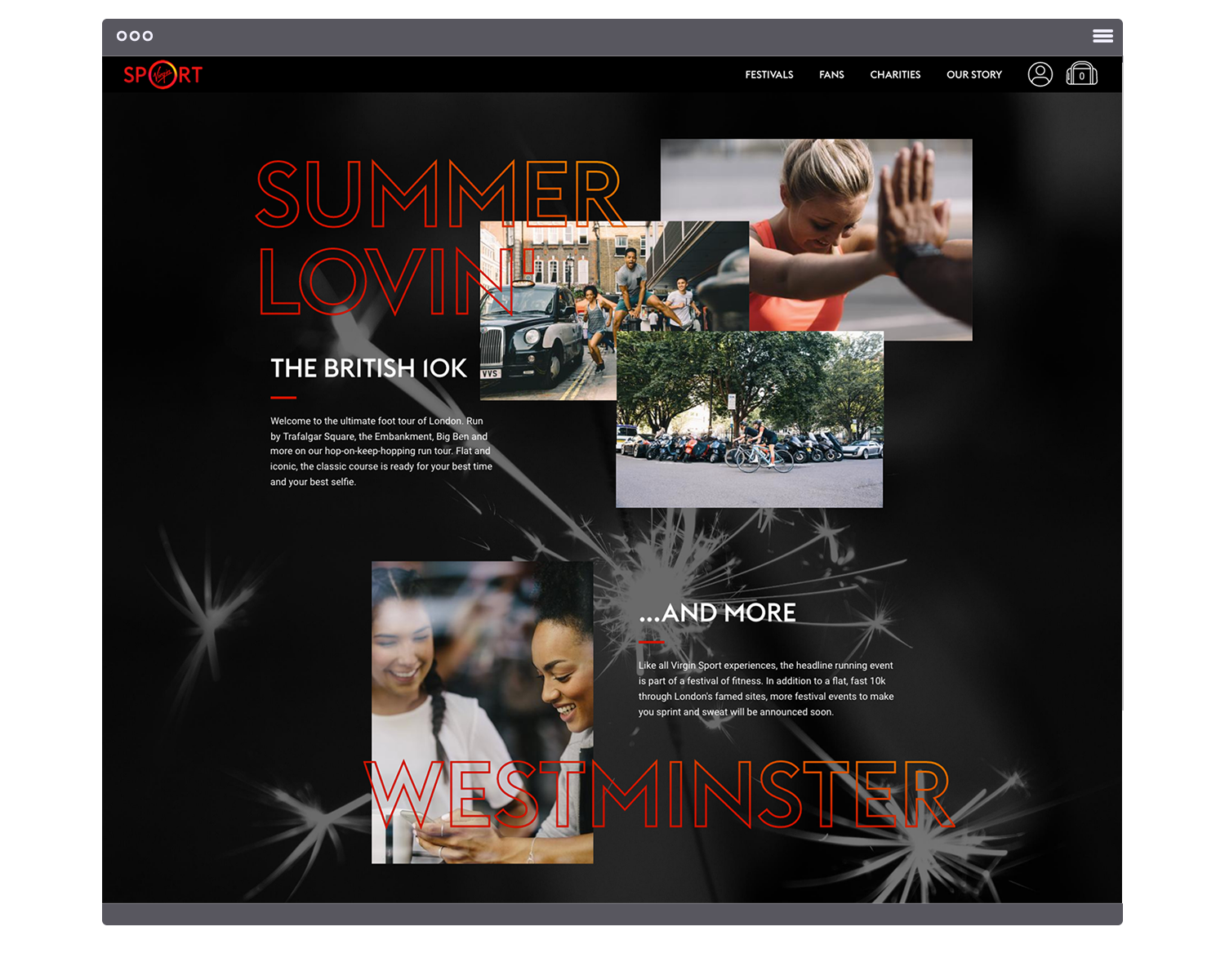 As the Global Director of Creative and Content at Virgin Sport, I worked closely with the head of marketing on honing the brand’s identity and preparing the website and all communications for the official launch in January 2017. I also designed print marketing collateral; digital assets for web, email, and social; pitch decks; and internal communications materials. Post-launch efforts included developing and rolling out robust customer acquisition campaigns via email marketing, social, and out of home as well as developing and implementing experiential graphics and copy for event signage and installations.